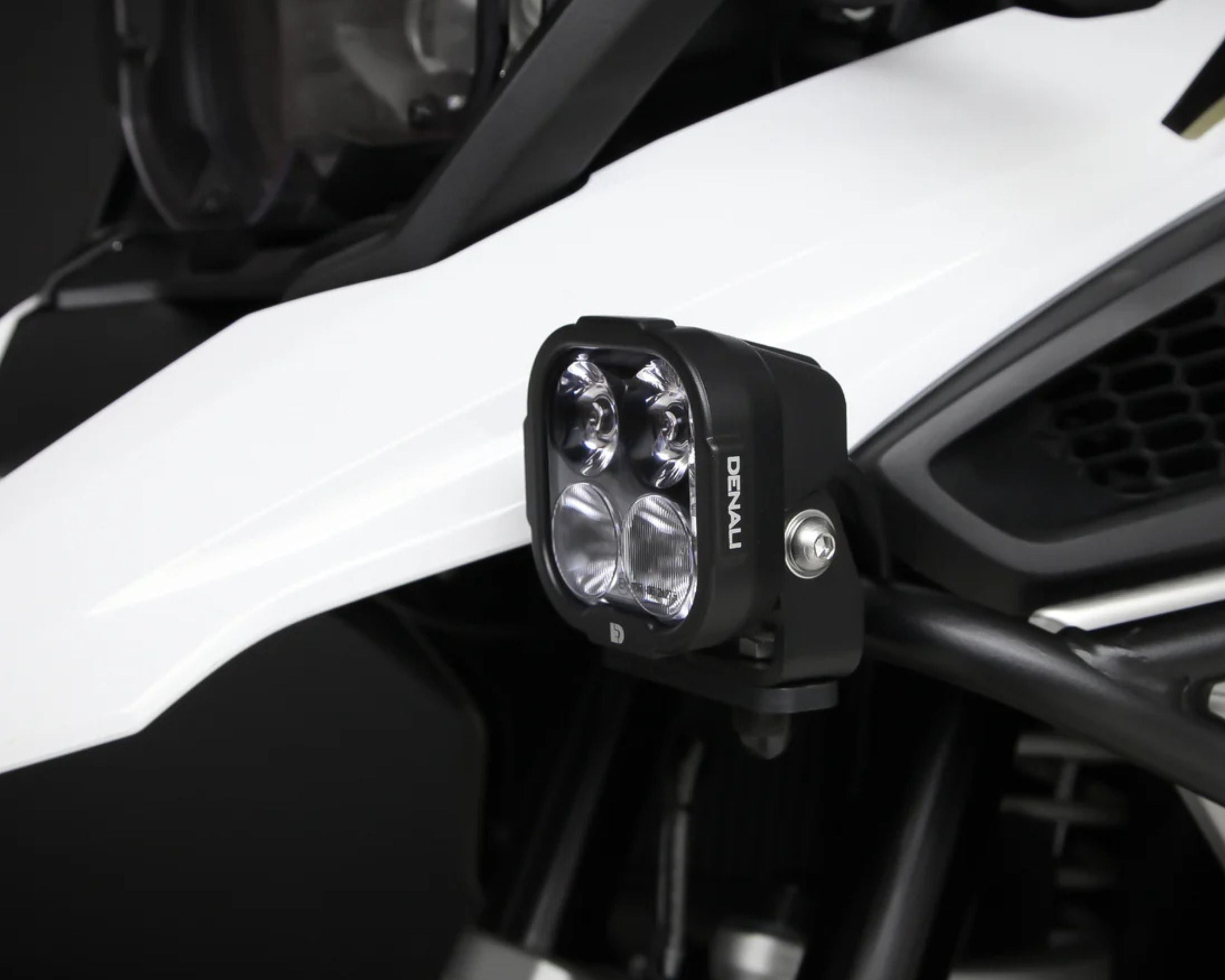 - Denali Electronics brings you the DL4 Auxiliary LED Lights – White. The DL4 features a perfected hybrid driving beam and is the ideal option for your primary auxiliary driving lights on small to medium sized bikes. It is also small and light enough that it can be mounted in lower fender applications on larger ADV bikes.