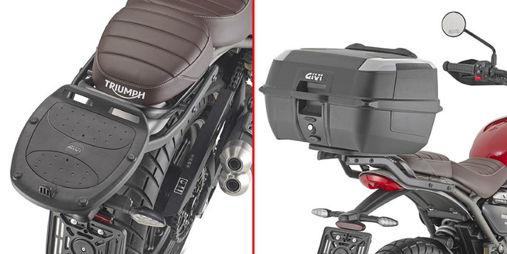 Designed specifically for the Triumph Speed 400 & Scrambler 400 (2024+). It is compatible with GIVI Monokey and Monolock top cases, requiring a separate specific mounting plate (e.g., M5, M7, M5M, M6M).