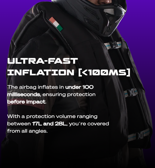 Neo Kavach’s wearable airbag technology combines cutting-edge engineering with precision design to safeguard your most vital areas. With a uniquely crafted airbag design, it offers full spine protection, trunk stiffening to shield vital organs, and comprehensive coverage for hips and kidneys — all while resisting hyper-flexion to maintain body stability. Smart, targeted, and adaptive, it’s not just protection — it’s peace of mind, engineered for your safety.