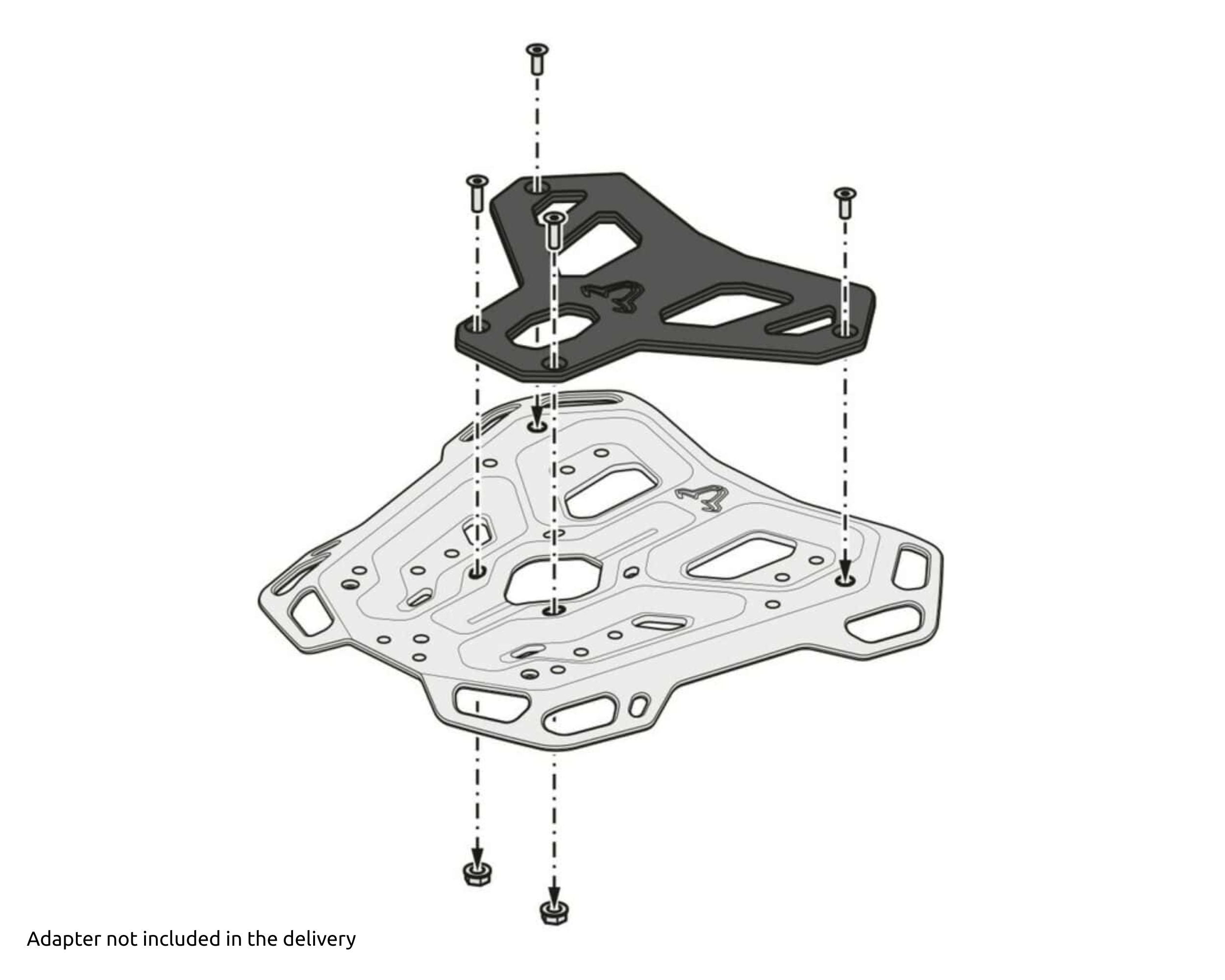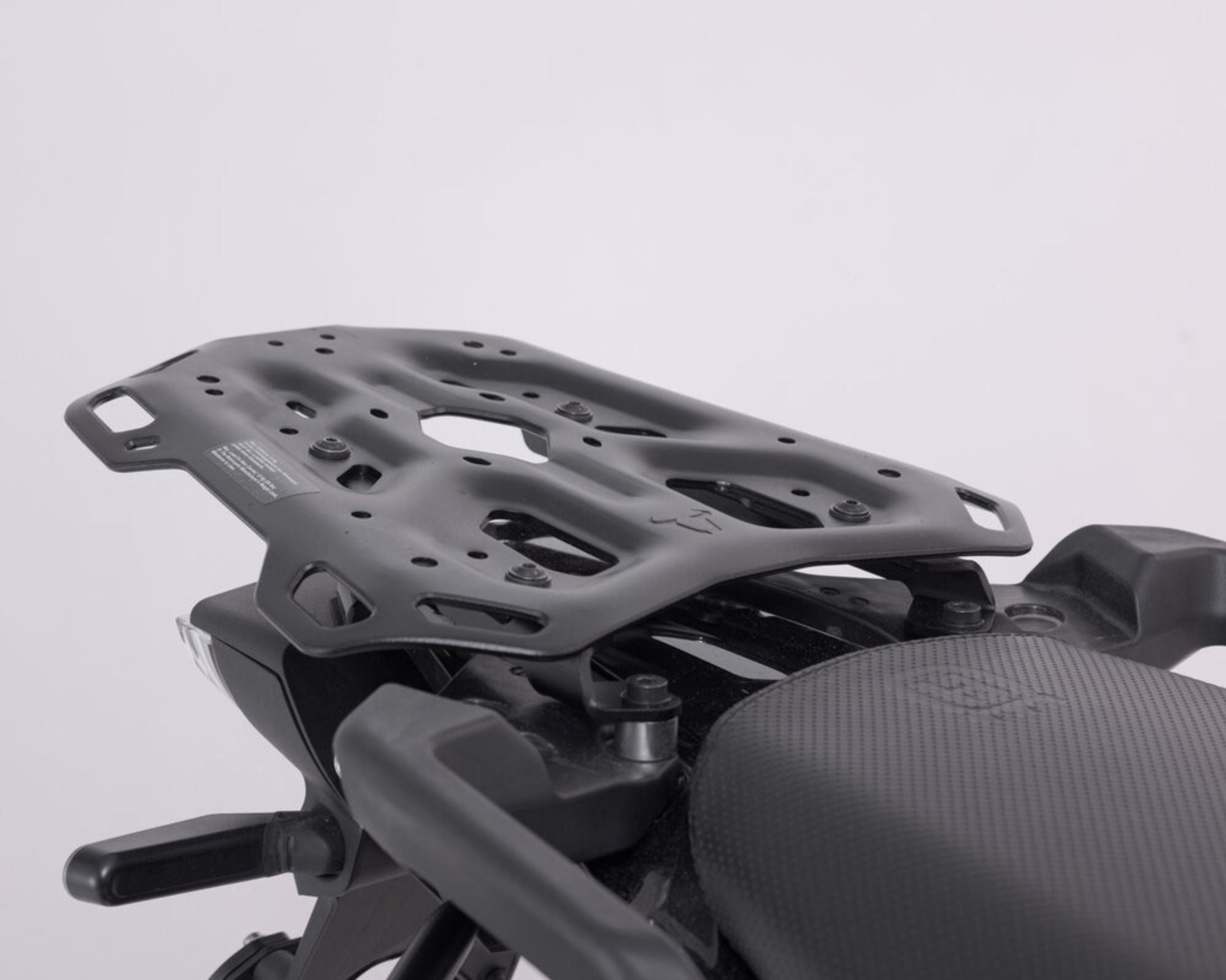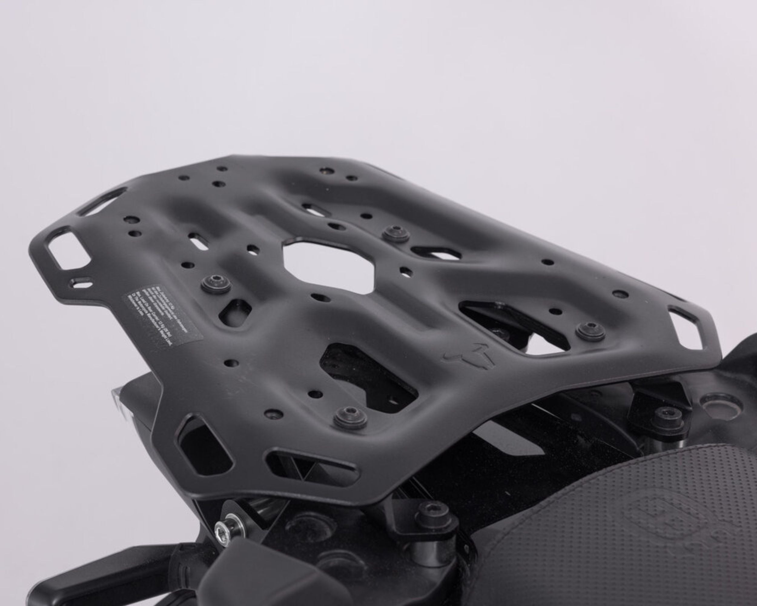 • It has a large contact surface (Width: 329 mm at the front, 225 mm at the back, Length: 303 mm). Pair this rack with a TraX Top Case, Urban ABS Top Case and SysBag using the appropriate adapter, or mount a tail bag such as the Rackpack or any of the Drybag series using the Quick Lock Luggage Rack Extension. Adapter kits for attaching top cases by other manufacturers (Givi Monokey and Monolock, Krauser, Shad I und II) are also available. Easy rigging of luggage on numerous, large lashing eyes, threading of 25 mm fasteners possible.