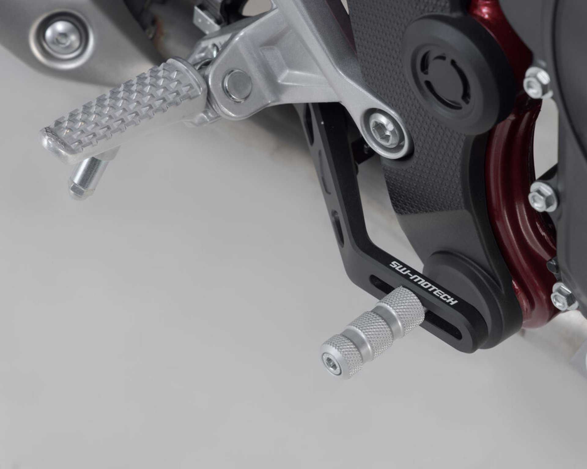 This adjustable brake pedal is made of high-quality milled aluminium with HART-COAT® finish and allows for optimized handling and control of the brake. It offers better ergonomics and safe operation of the brake pedal. The length of the SW-Motech brake pedal can be adjusted by 50mm, so it suits every foot and every driving style. It has a high-quality milled tread that increases grip and provides maximum stability for sporty driving and longer tours. Knurling increases grip and prevents slipping. The Platform features various adjustable positions. With the Adventure tread (sold separately) you can further improve brake pedal handling, especially during off-road driving while standing.